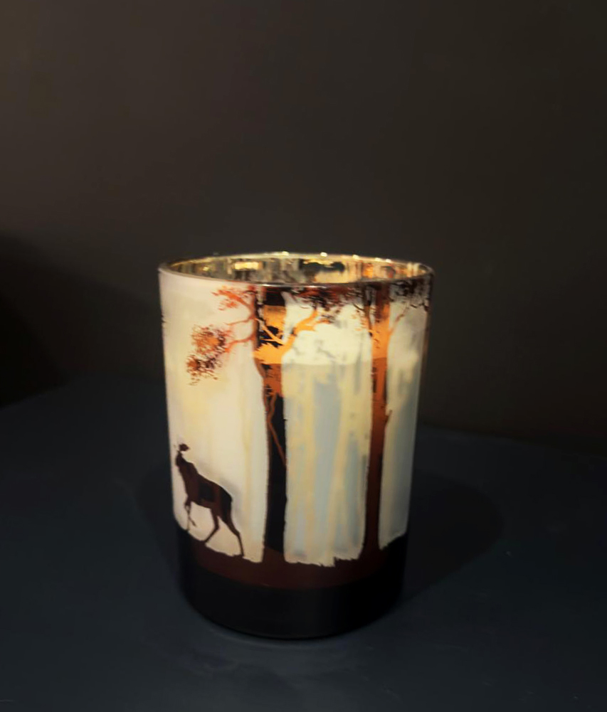 Στο συγκεκριμένο βάζο έχει τοποθετηθεί κερί με μυρωδιά ginsberg και όταν είναι αναμμένο προσδίδει χρώμα και ζεστασιά στον χώρο.