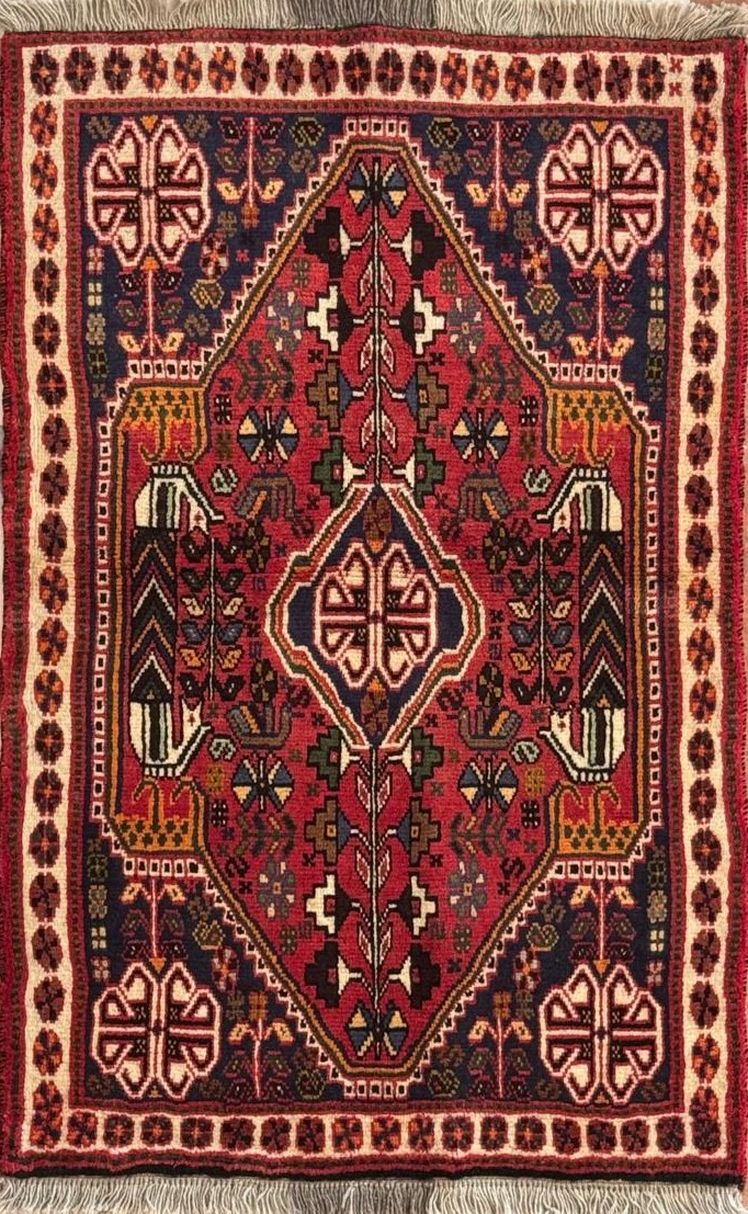 Χαλί χειροποίητο, περσικό, νομαδικό, ολόμαλλο, από την περιοχή Shiraz και τον ευρύτερο νομό Gasgai, με κεντρικό ρόμβο, σε πολύ ζεστά χρώματα σε κόκκινο κεραμιδί και μπέζ μπορντούρα. Αρκετά παχύ πέλος με μεσαία πυκνότητα κόμπων. Ιδανικό για ξύλινα πατώματα και χειμερινούς προορισμούς!